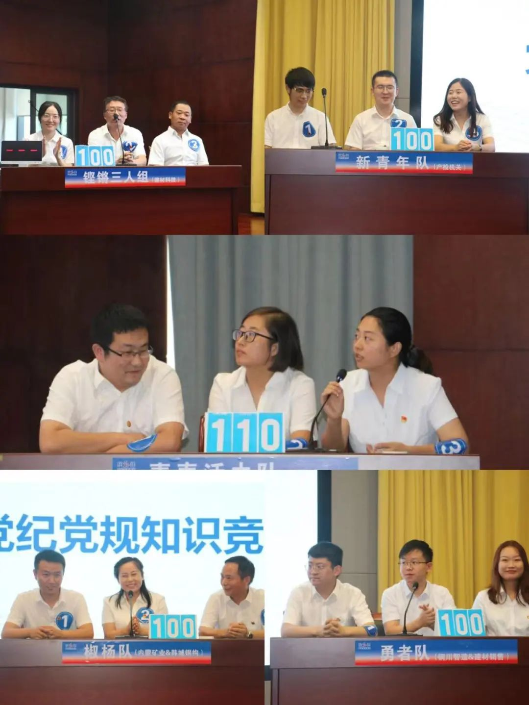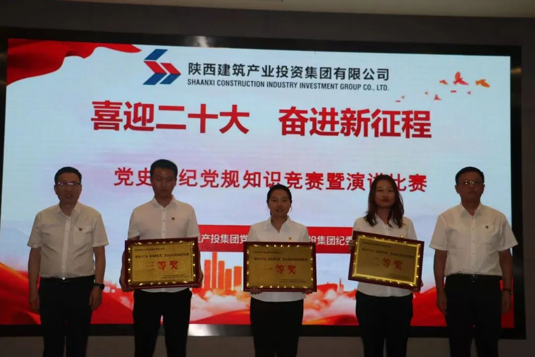 在知識競賽中,來自集團(tuán)機(jī)關(guān)和基層單位選派的5支隊伍,經(jīng)過必答題、搶答題、風(fēng)險題三個環(huán)節(jié)的激烈角逐,賽出了風(fēng)格,賽出了水平,為大家奉上了一場集知識性與趣味性于一體的黨史黨紀(jì)黨規(guī)教育課,展現(xiàn)了產(chǎn)投人團(tuán)結(jié)協(xié)作,奮發(fā)向上的良好團(tuán)隊風(fēng)貌。最后陜建新型建材黨支部組建的代表隊榮獲一等獎,陜建銅川智造黨支部及陜建建材銷售黨支部組建的代表隊獲得二等獎,陜建內(nèi)蒙礦業(yè)黨支部及陜建韓城鋼構(gòu)黨支部組建的代表隊獲得三等獎。