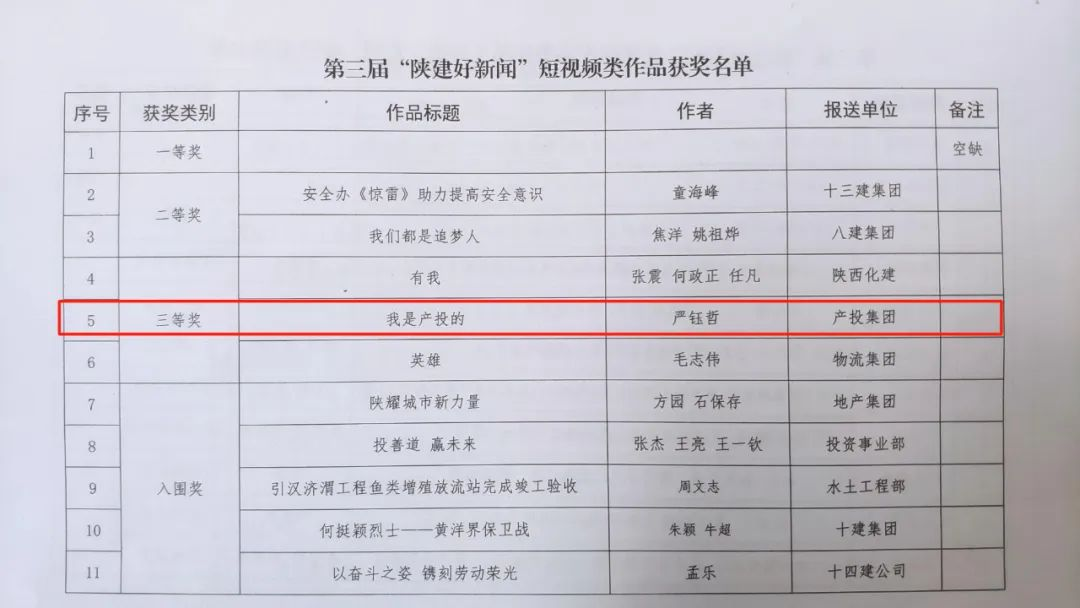 12月13日,2023年度《陜西建筑報(bào)》發(fā)行工作暨表彰大會(huì)在西安召開,陜建產(chǎn)投集團(tuán)報(bào)送的《我是產(chǎn)投的》被授予第三屆“陜建好新聞”短視頻類三等獎(jiǎng)。投資集團(tuán)