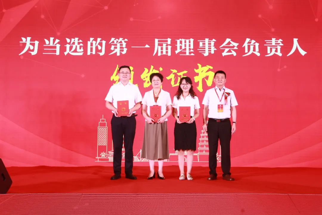 相關(guān)領(lǐng)導(dǎo)為當(dāng)選的第一屆理事會(huì)負(fù)責(zé)人頒發(fā)證書。