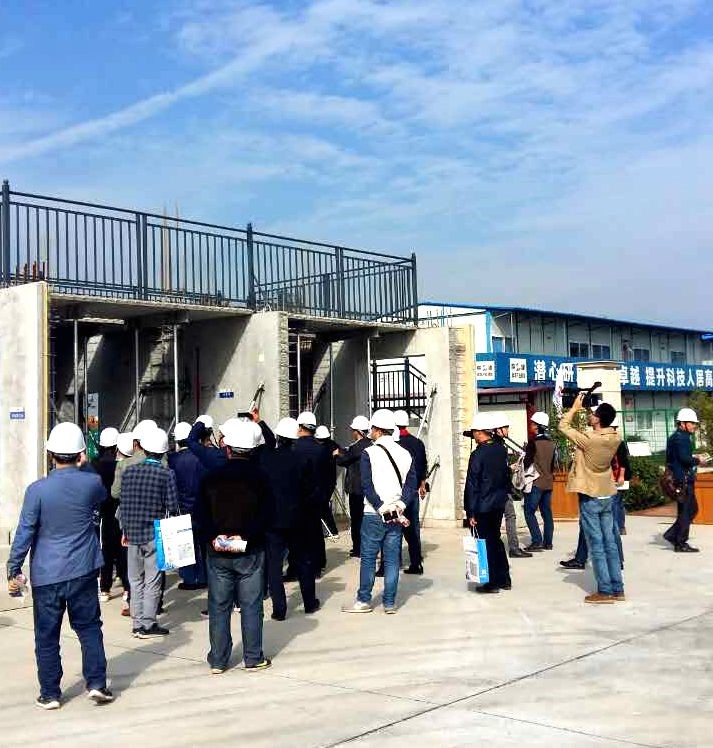 當(dāng)天下午,與會(huì)人員到陜建(西咸)建筑產(chǎn)業(yè)基地參觀了PC車間生產(chǎn)線、建筑類和市政類預(yù)制構(gòu)件產(chǎn)品堆放區(qū)以及裝配式混凝土剪力墻結(jié)構(gòu)宿舍樓和裝配式混凝土框架結(jié)構(gòu)辦公樓項(xiàng)目。車間內(nèi)先進(jìn)的生產(chǎn)設(shè)備,堆場上擺放整齊的構(gòu)件部品,項(xiàng)目現(xiàn)場精益的施工技術(shù)引得參觀人員不斷地駐足交流。